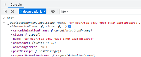 Agora, do lado do worker, vamos dar uma inspecionada na propriedade read-only self, que refere-se à instância do worker em si (repare na Figura 1 que “this” está undefined). O que nos importa deste lado é o seguinte: