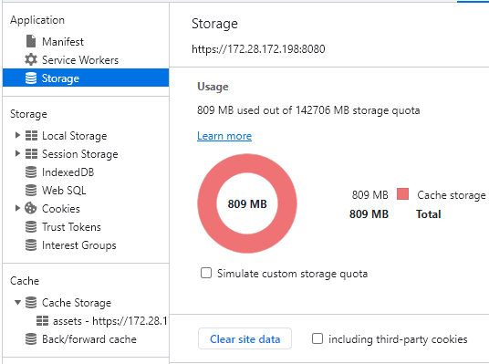 Figura 8: Quota de armazenamento de uma aplicação web rodando no Chrome, em um desktop Windows.