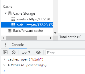 Em vez de usar caches.open(“assets”) para abri-lo e depois cache.match(“https://blah.com/tldr.png”) para recuperar o response cacheado, você pode simplesmente usar caches.match(“https://blah.com/tldr.png”). A diferença, pegando este atalho, é que a busca não é feita “em um cache específico”, mas em todos. Ou seja, há um custo extra na busca.