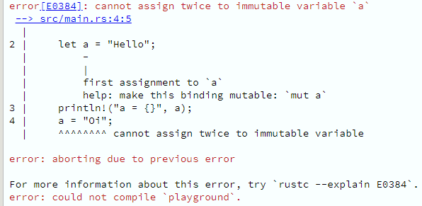 Agora, espere. O que aconteceria se seguíssemos a sugestão do compilador e tornássemos a variável a mutável?