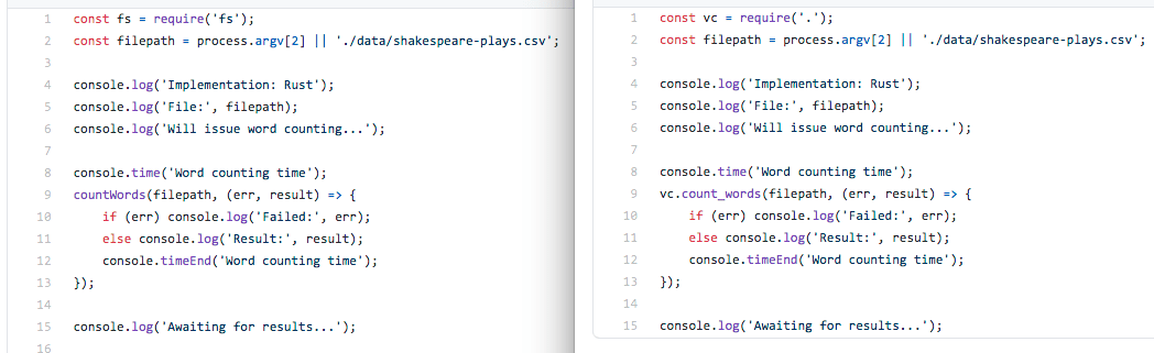 Para ter uma ideia de como é escrever uma extensão em Rust com a ajuda de Neon, fiz um projeto de teste, um contador de palavras básico. O processo foi muito simples e sem enroscos. Fiquei realmente surpreso.